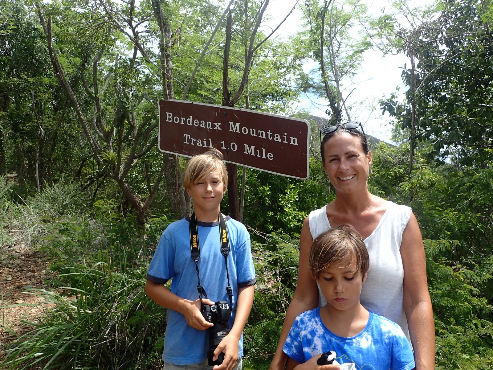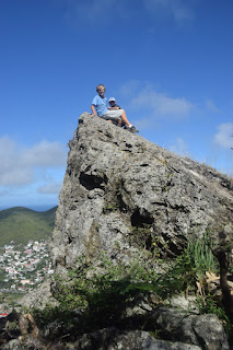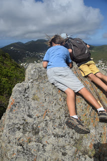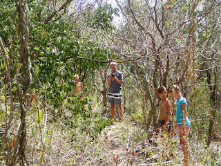 | Ram's head hike looking for a safe place to plant Vern, an accidental sprout from St. John on our boat. We had to make sure he was doing well before saying farewell to the Virgin Islands and heading for Puerto Rico. So long VIs. We hope to see you again one day! |