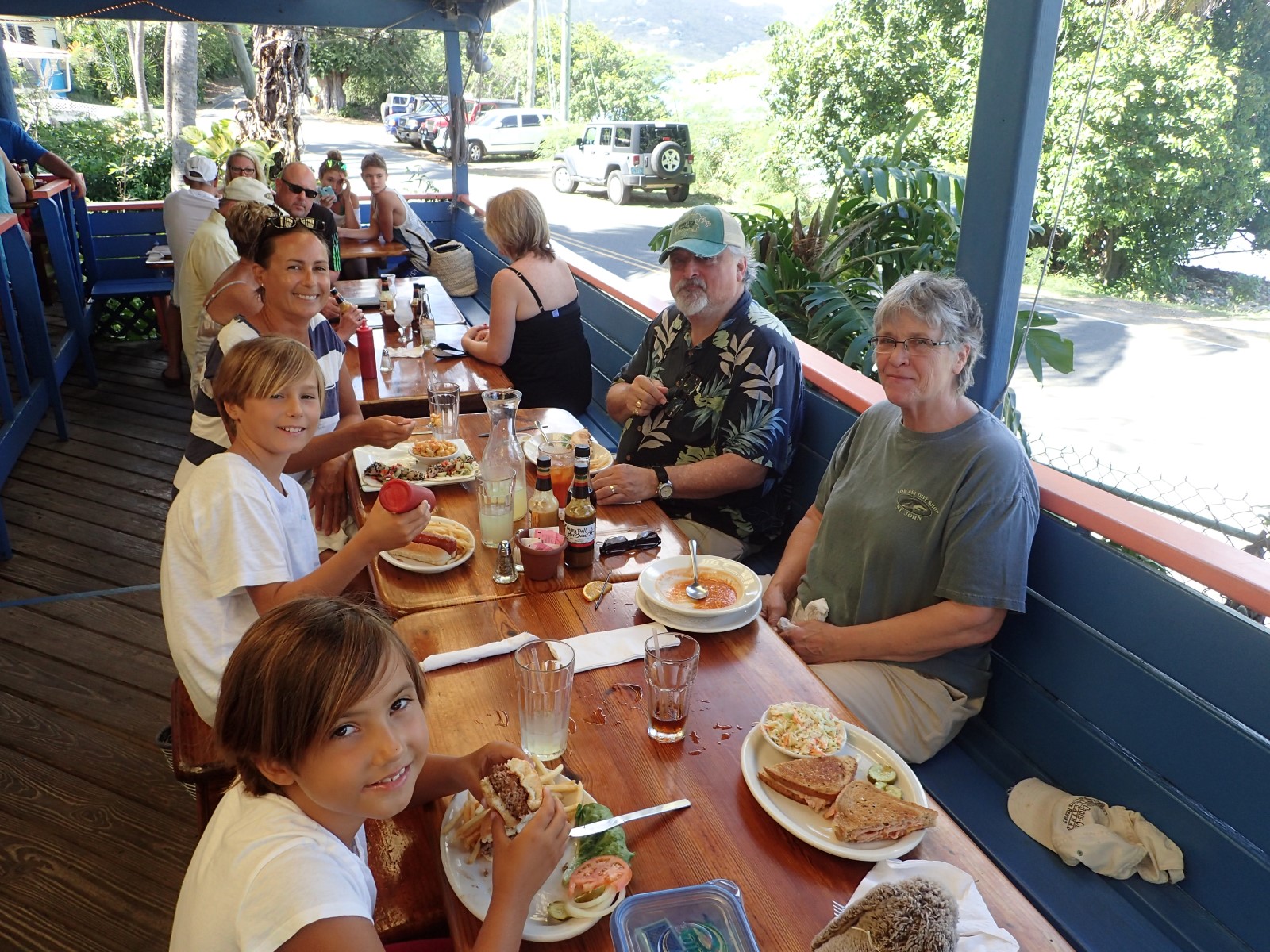 | We couldn't believe that the luck of our timing coincided with my uke teacher's vacation to St. John! We had so much fun catching up with Uncle Zac and his wife Laurie. They treated us to a great lunch and a tour in their car. Since Laurie's mom lived on the island for many, many years and they've been visiting since their kids were little we got lots of local scoop. |