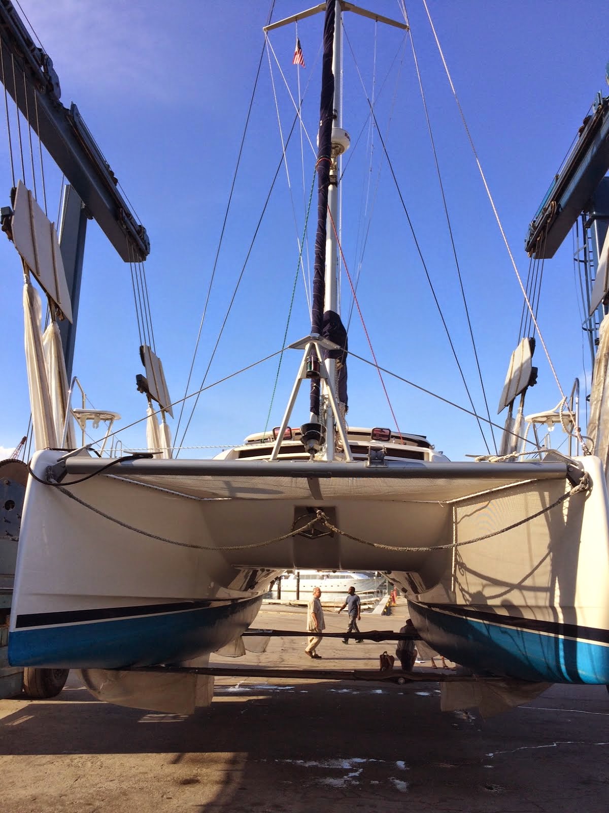The travel lift at Harbor Towne had been acting up so we went across the channel early on day 2 of the survey and got hauled out at Broward Shipyard.