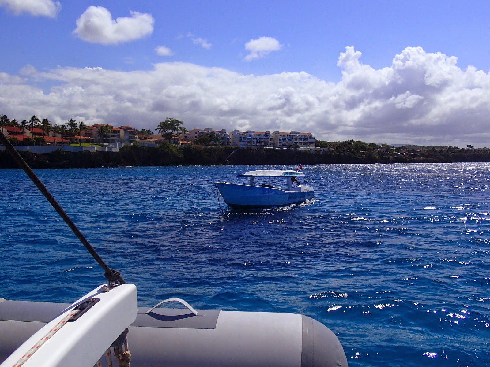 The Mona Passage is the body of water between the Dominican Republic and the west coast of Puerto Rico. It has a bad reputation for its varying wind conditions, currents, capes, shoals, and thunderstorms. So, in typical yellow-bellied form, we planned our trip carefully and it was....annoying, bouncy and boring. We left the marina in the morning and staged ourselves at Cayo Levantado for a night departure. Once anchored, we were surprised and excited to hear, after six months, VHF transmissions from the US Coast Guard in Puerto Rico. We kept the radio on just to hear the sweet sounds of those mush-mouthed coasties making their Securite announcements! Andy took the kids snorkeling while I chewed my nails fretting over being in yet another non-legit anchorage.