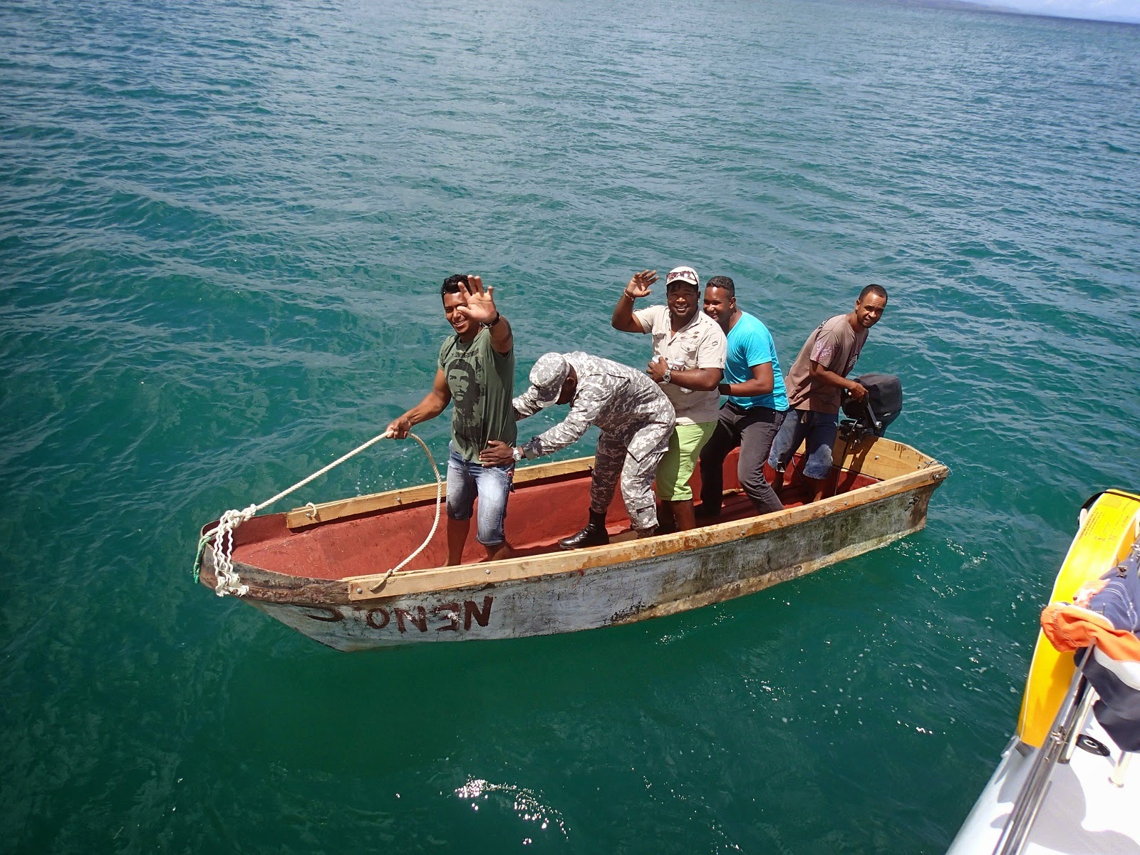 | Approaching Cayo Levantado we saw fishermen setting out their net in the spot where we wanted to anchor. It has that ideal tropical paradise look. |