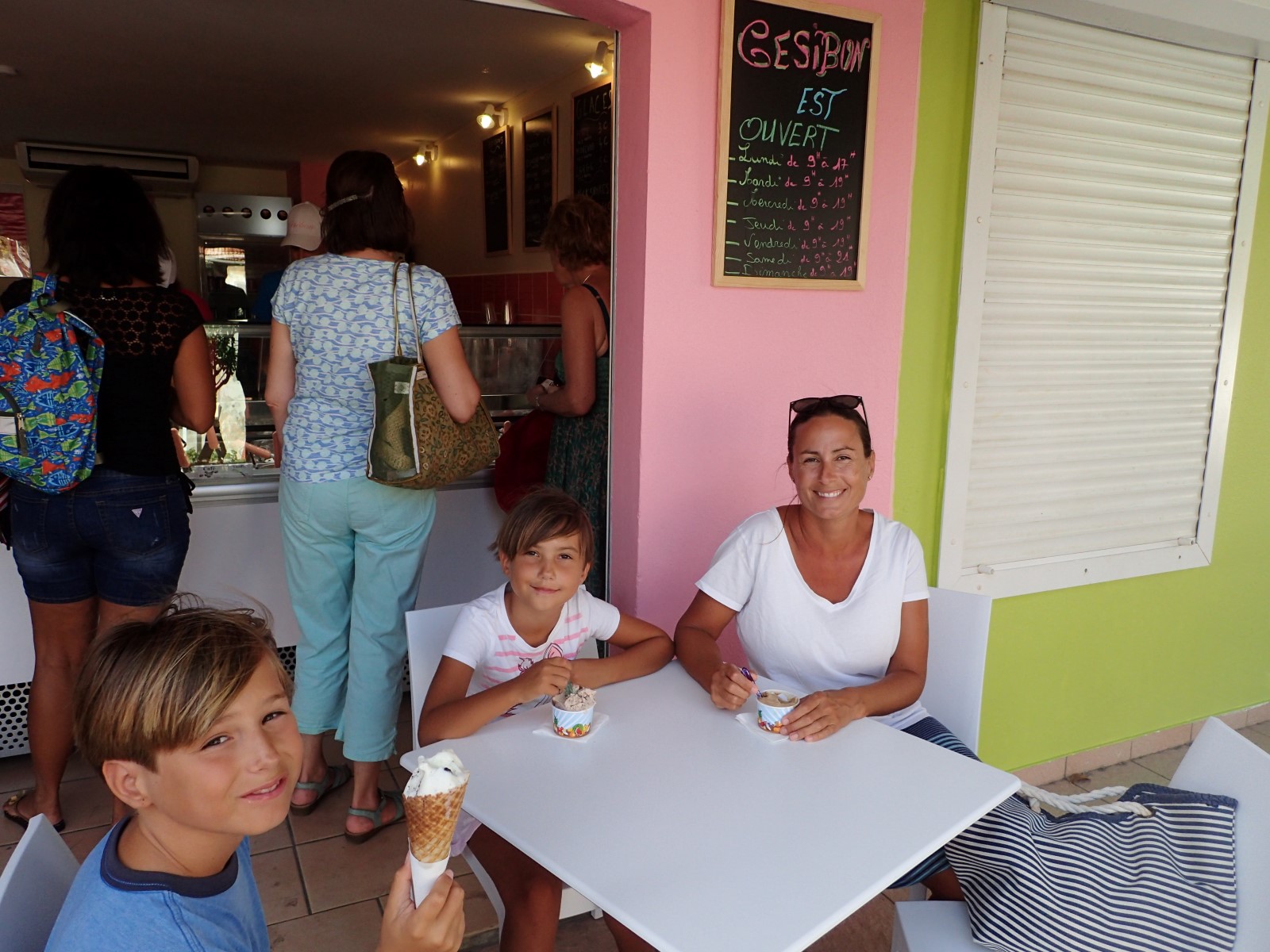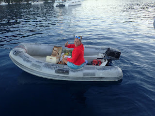 | Every day a group of Haitian ladies line the street near the dock and sell fresh produce. As you walk past they shout, "Hey, lady! Come! Come here!" all at once, motioning to their goods. It's pretty funny how they compete for your business and try to distract you and lure you away while you're making a purchase from one table. And if you walk past to scan everything first and say you'll be back, they will hold you to it. But they're all friends and enjoy ribbing each other. There is such an abundance of beautiful fresh produce it's hard to stop buying. But the true market day is Saturday. We didn't get up early enough to really experience it but actually preferred non-market day when we could shop without blaring music and a blaring preacher. |