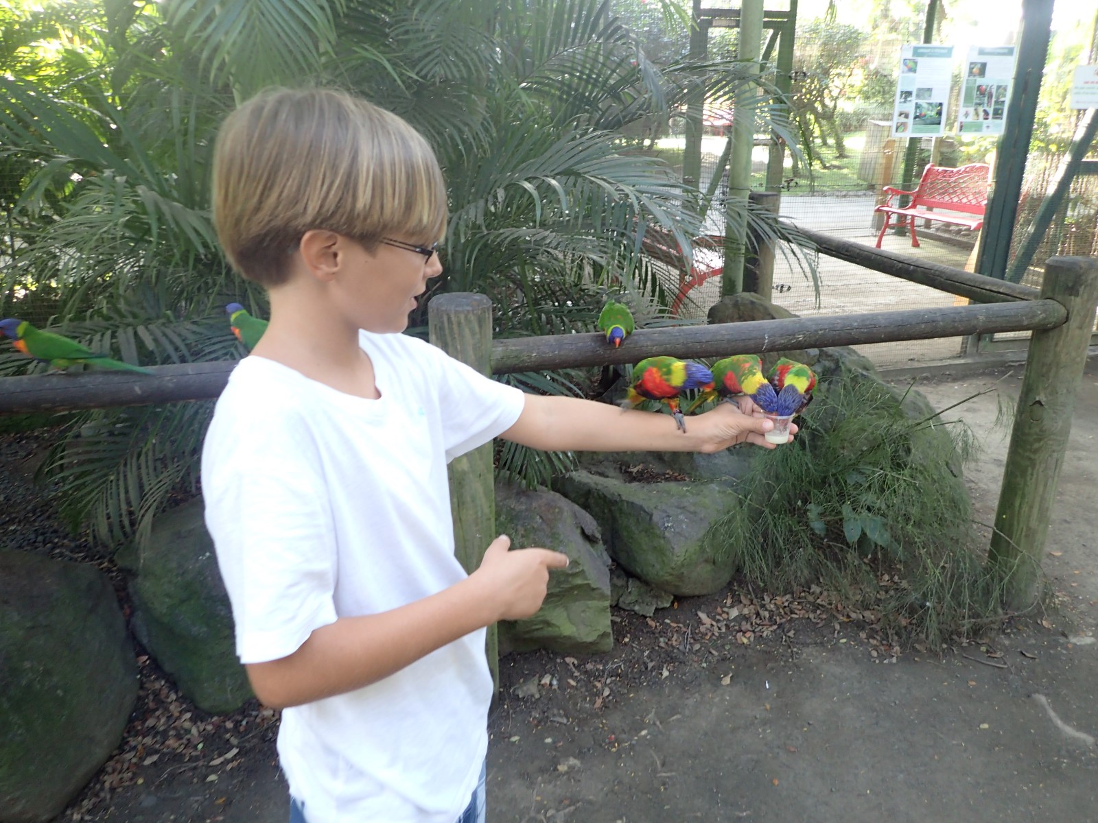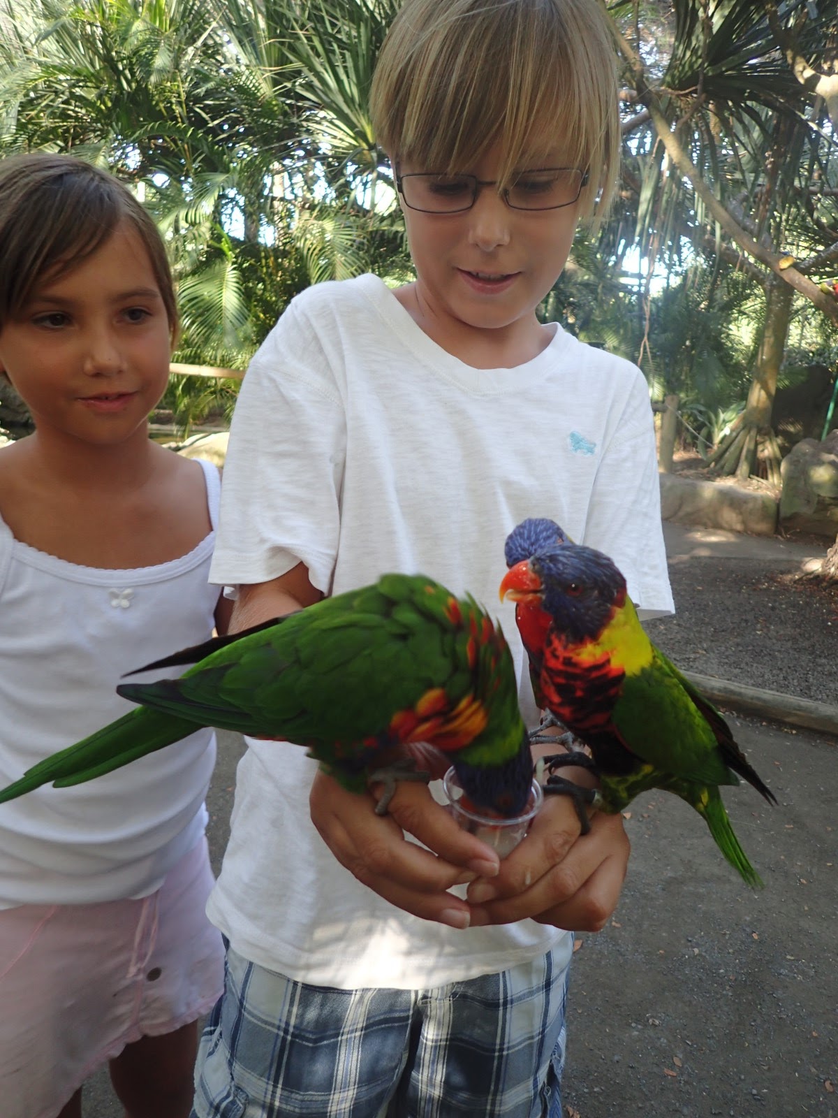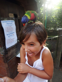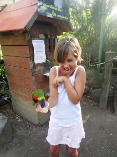 | The kids had fun feeding the lorakeets. Cubby wasn't so sure she wanted to do it. |
