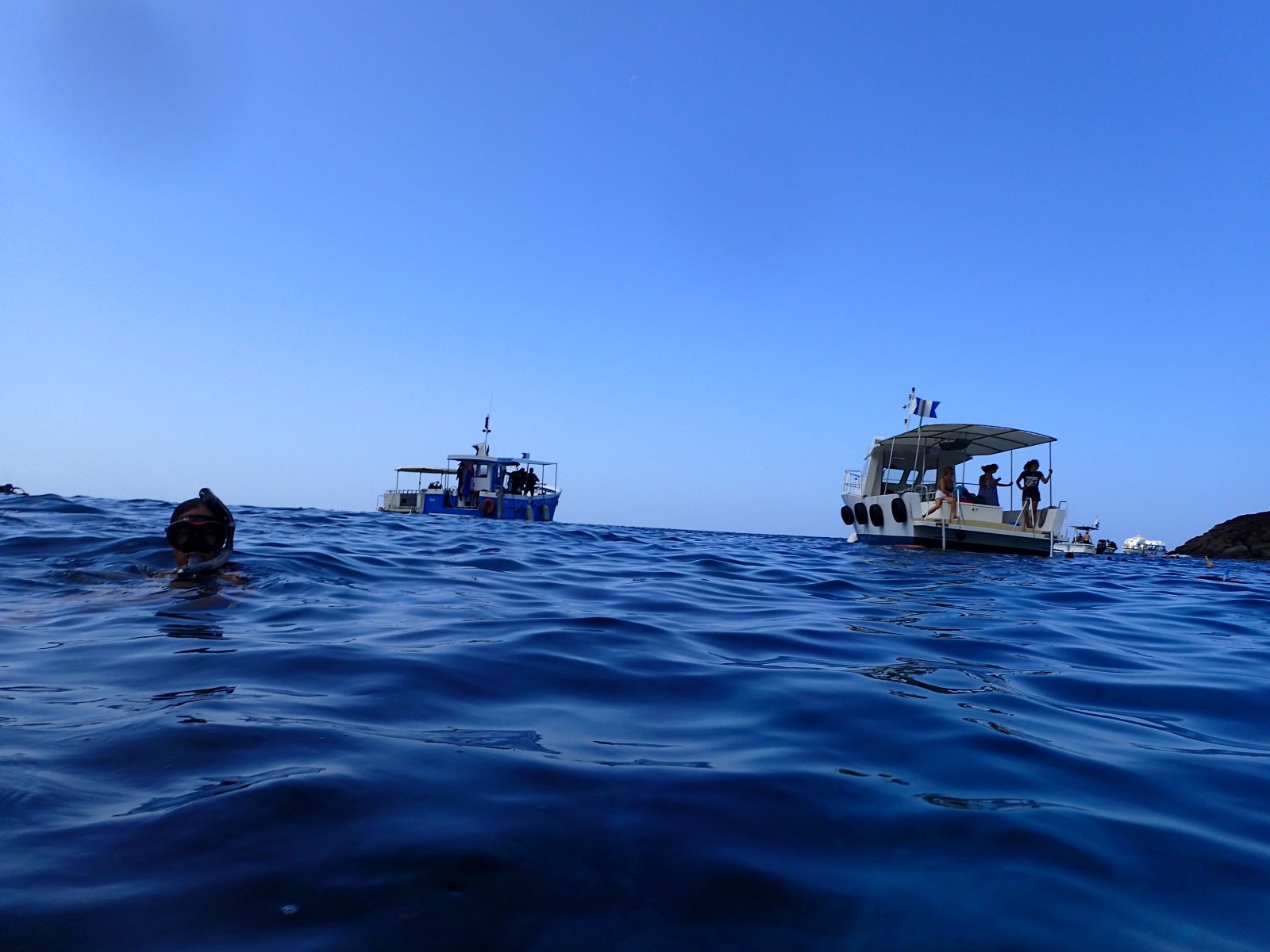 | Lots of dive and snorkel boats ferry people out to the island. |