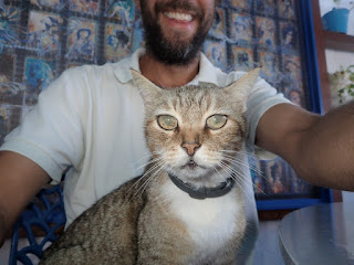 | A selfie with our lunch companion who really enjoyed sharing Andy's grilled tuna. |