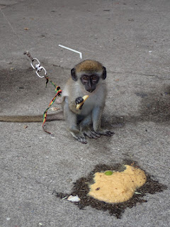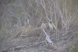 | Drew and Andy went for a walk and saw lots of wild monkeys. Which made Cubby cry because she had opted out of the walk. |