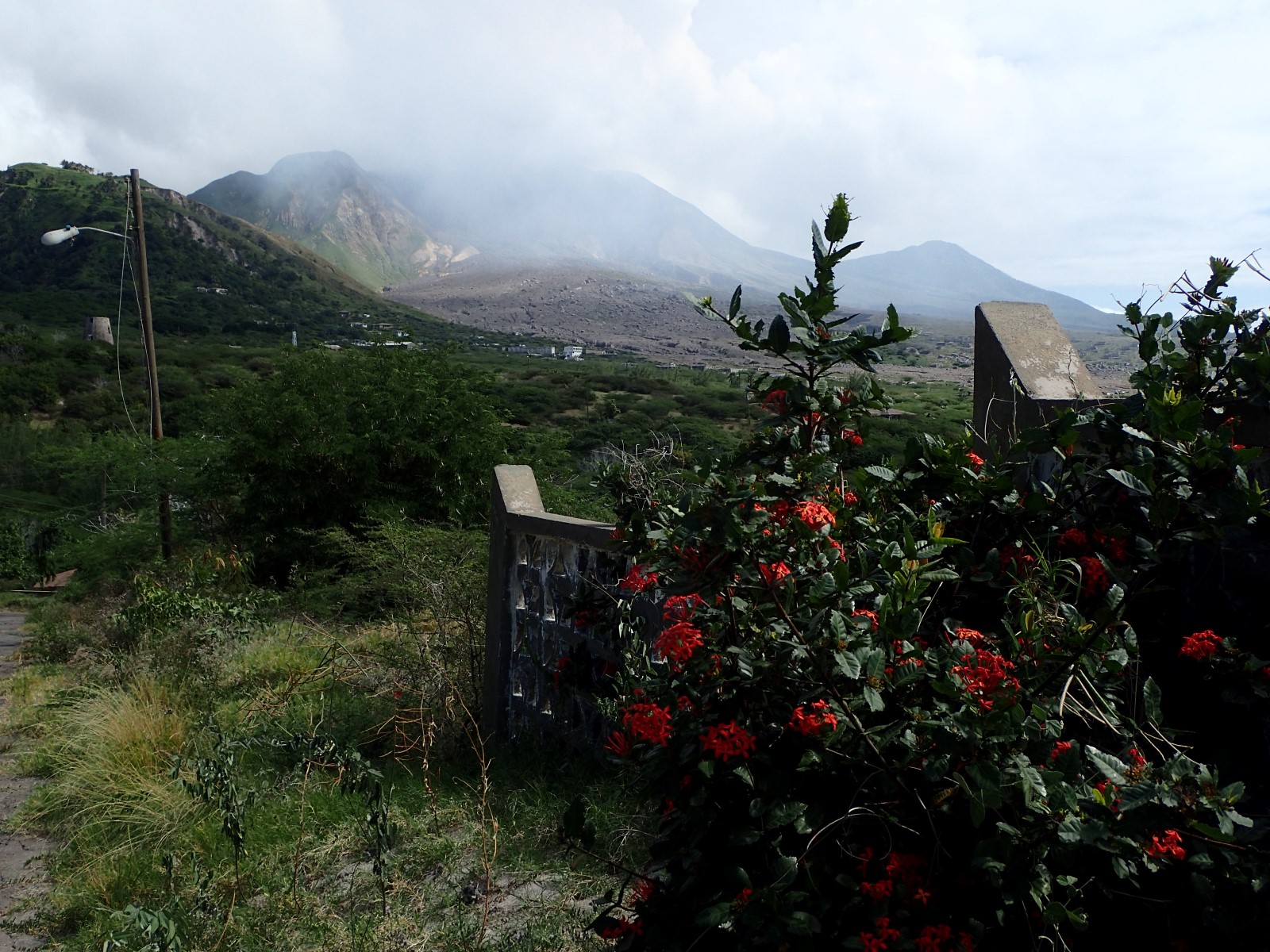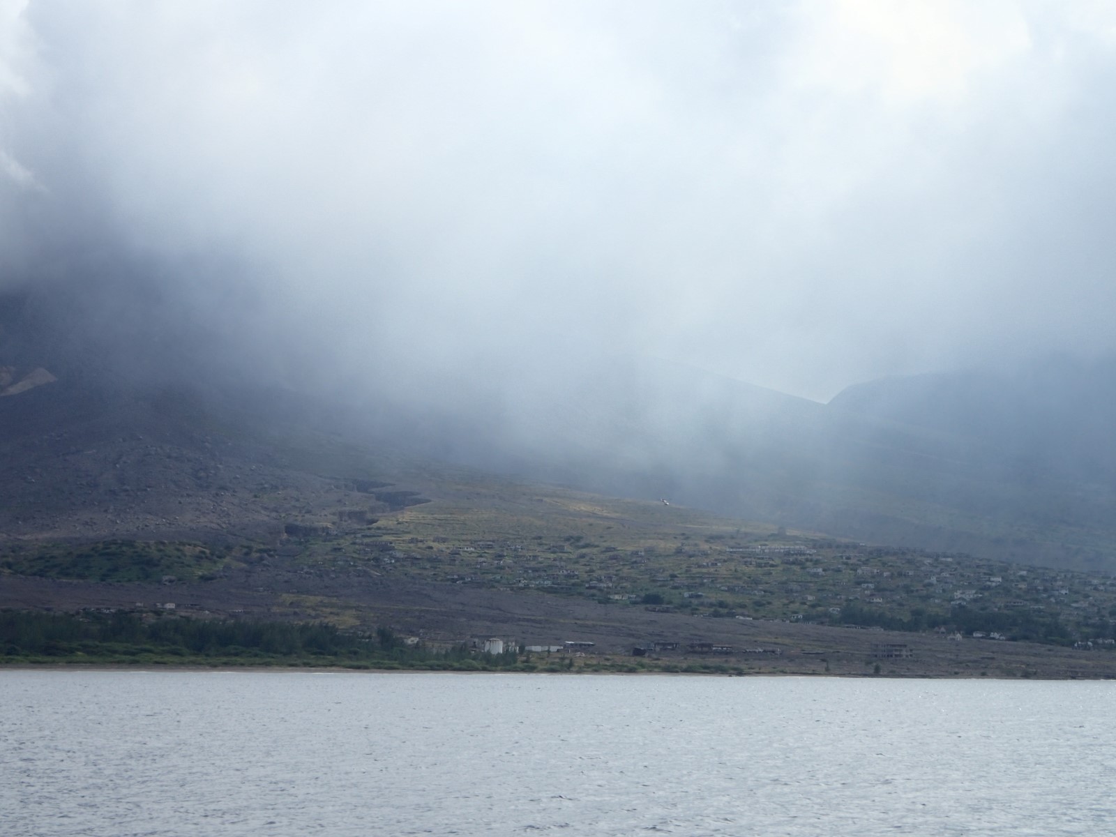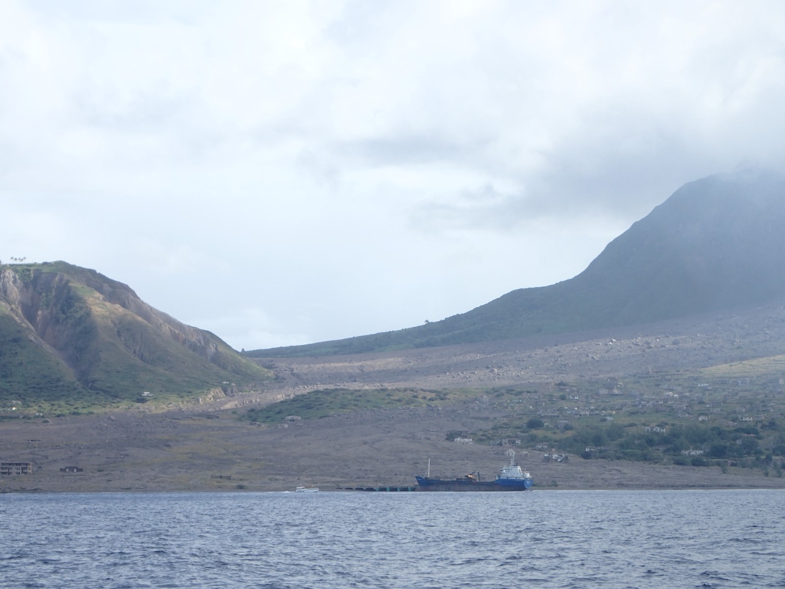 | A view toward the volcano and the former, now totally wiped out, capitol of Plymouth. |
