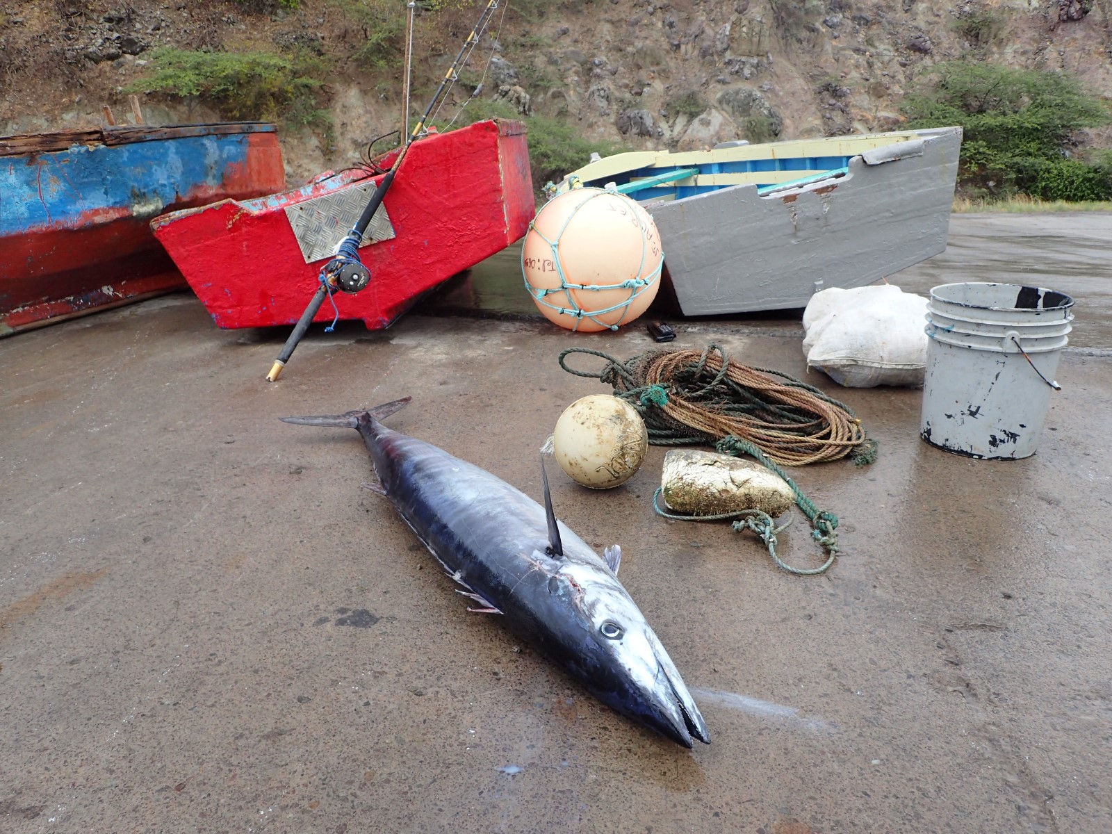 | Some local fishermen showed us their catch. Nice wahoo! |