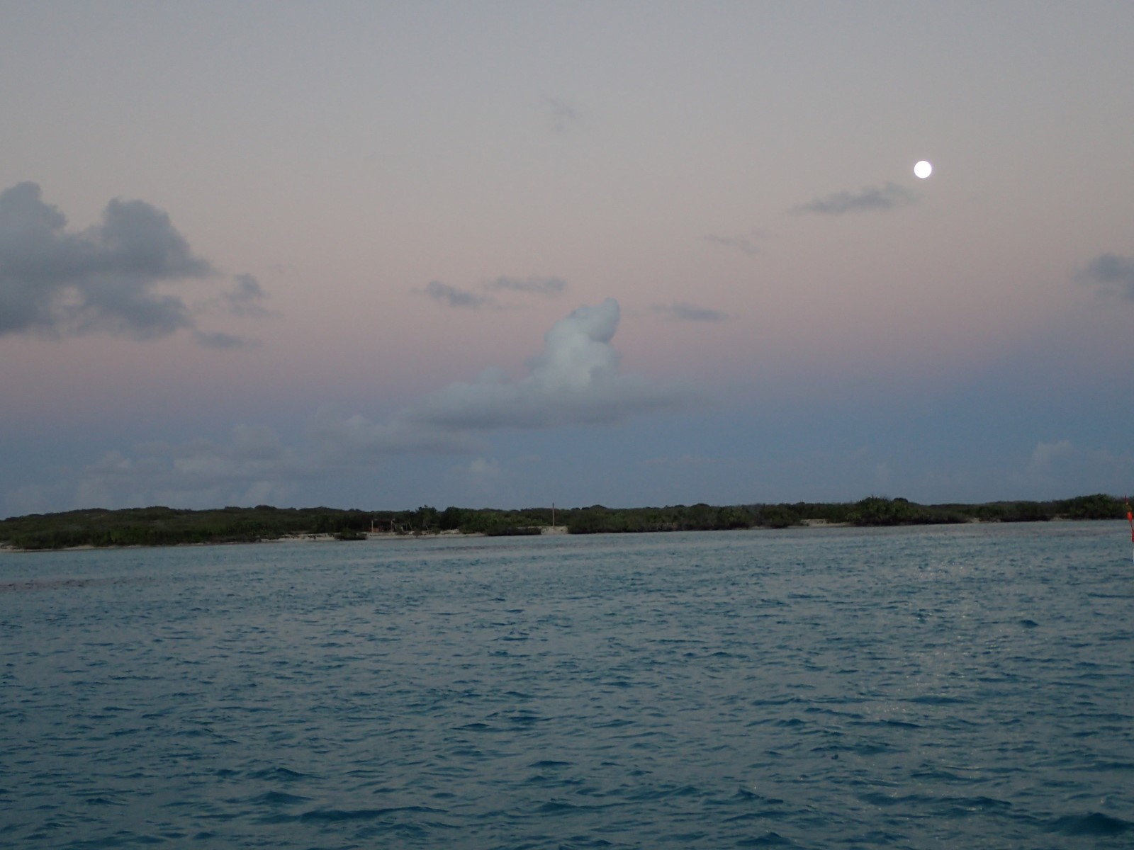 | We had a full to full-ish moon the whole time we were there. It was beautiful to be in this remote anchorage listening to the waves crashing with everything lit up by nothing but moonlight. It was so bright that I could see the sandy bottom underneath the boat in the middle of the night. |