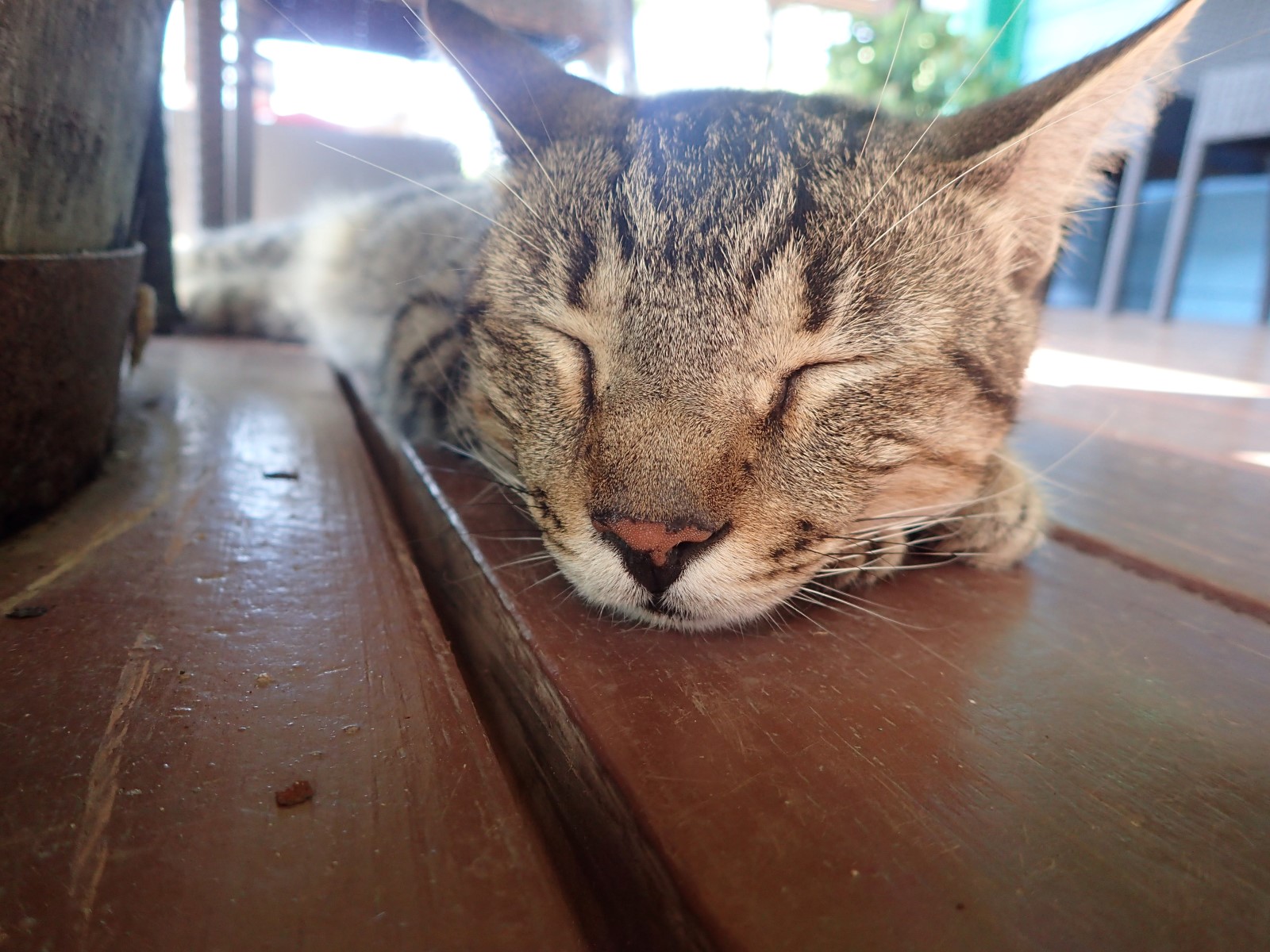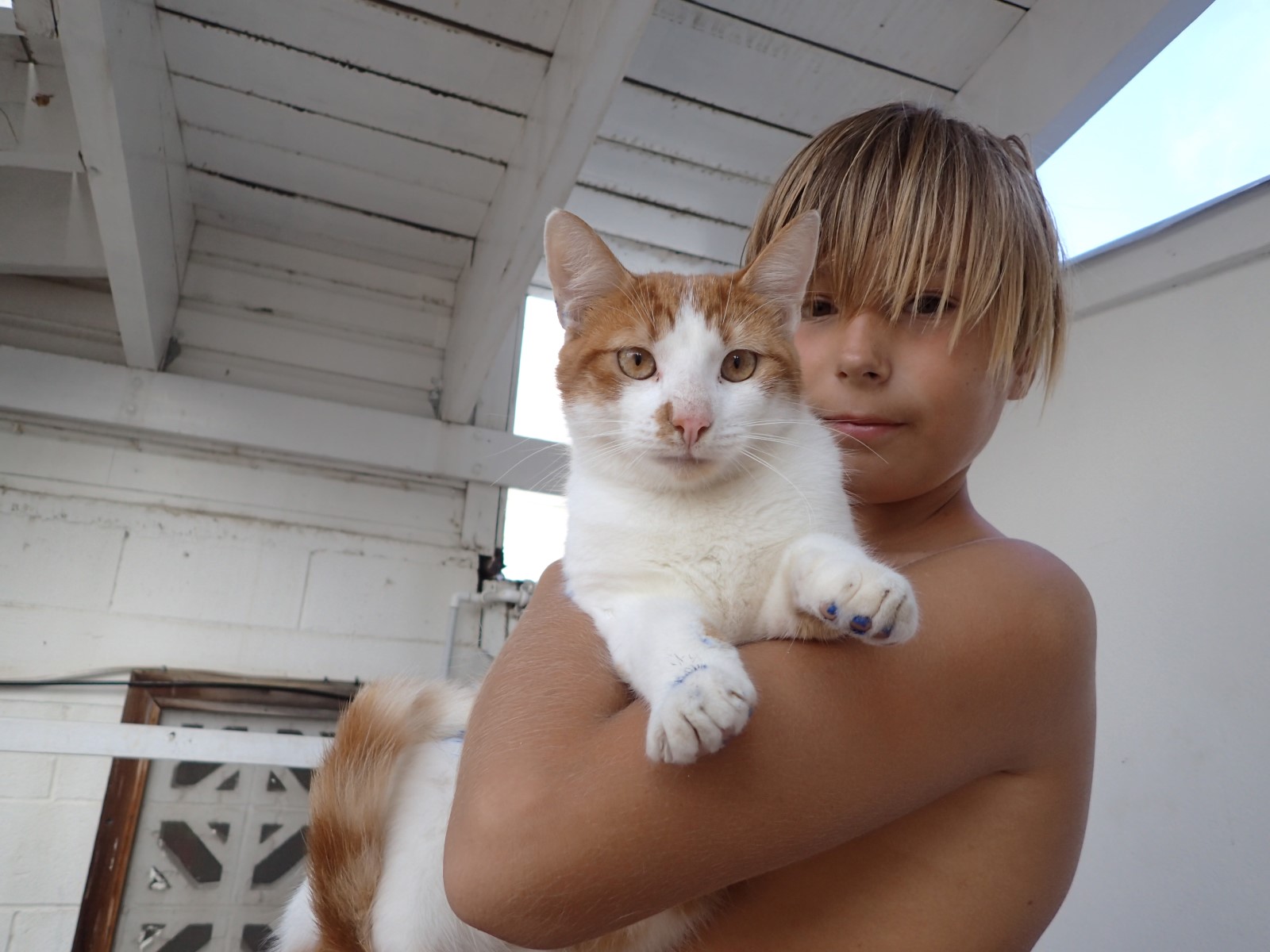 | Back at the yacht club for more sailing lessons and kitty friends. See the wet paint on her paws? |