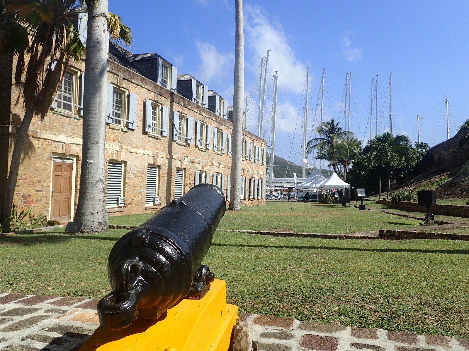| The buildings throughout Nelson's Dockyard have been fully restored and, of course, are now used for different purposes than their original use. But the repurposing of the buildings has allowed it to become a working boatyard for modern mariners. |