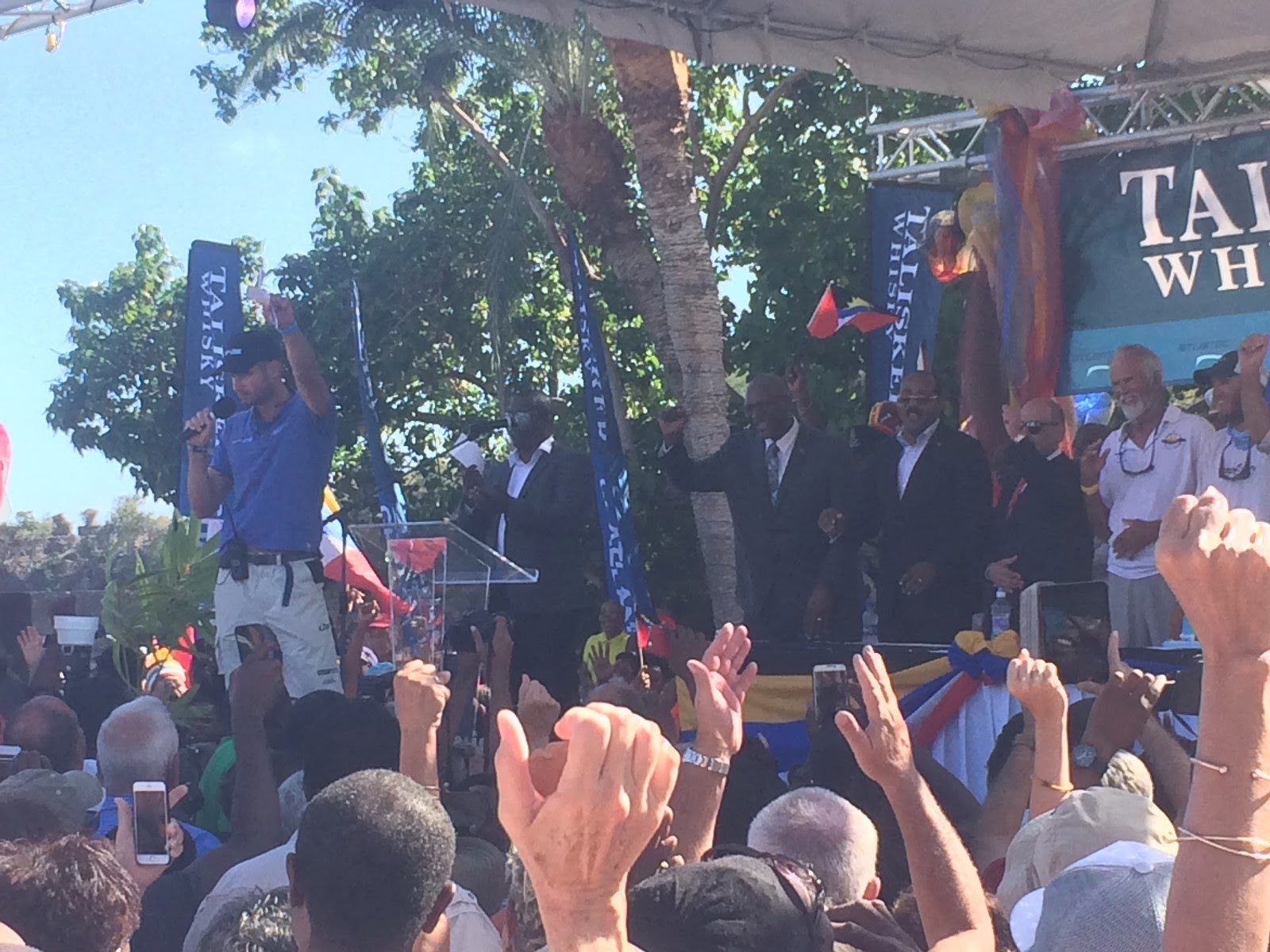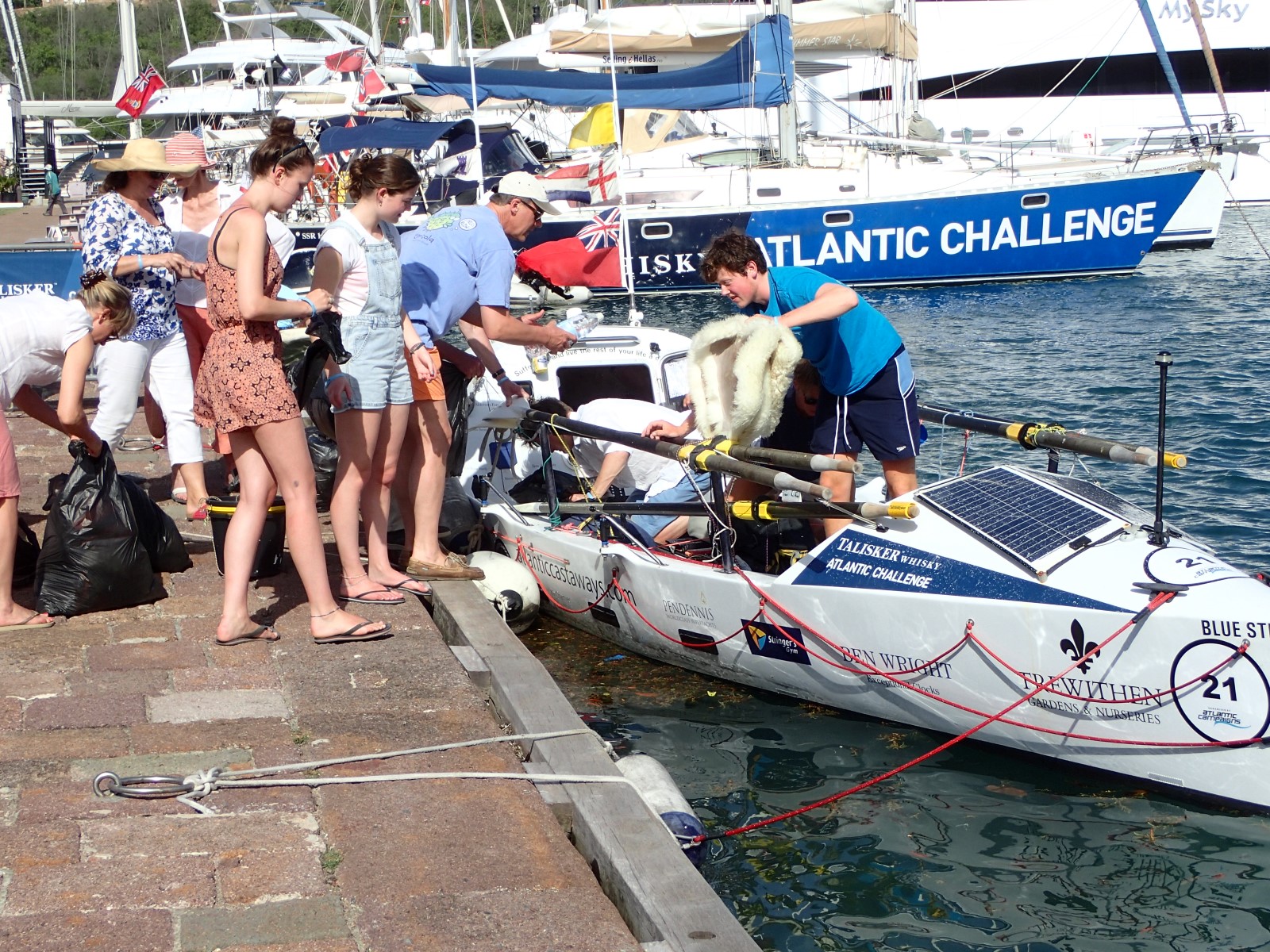 | When we heard tons of boat horns blaring we knew the Antigua & Barbuda rowing team had arrived. So we raced over to the Dockyard to take part in all the excitement. |