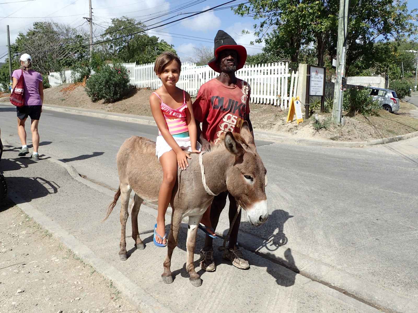 | Andy and Drew went to town for some reason and came across the sweet donkey again. This time his owner was with him and offered Drew a ride on little Selassie. Cubby was beyond upset that she didn't get a turn. |