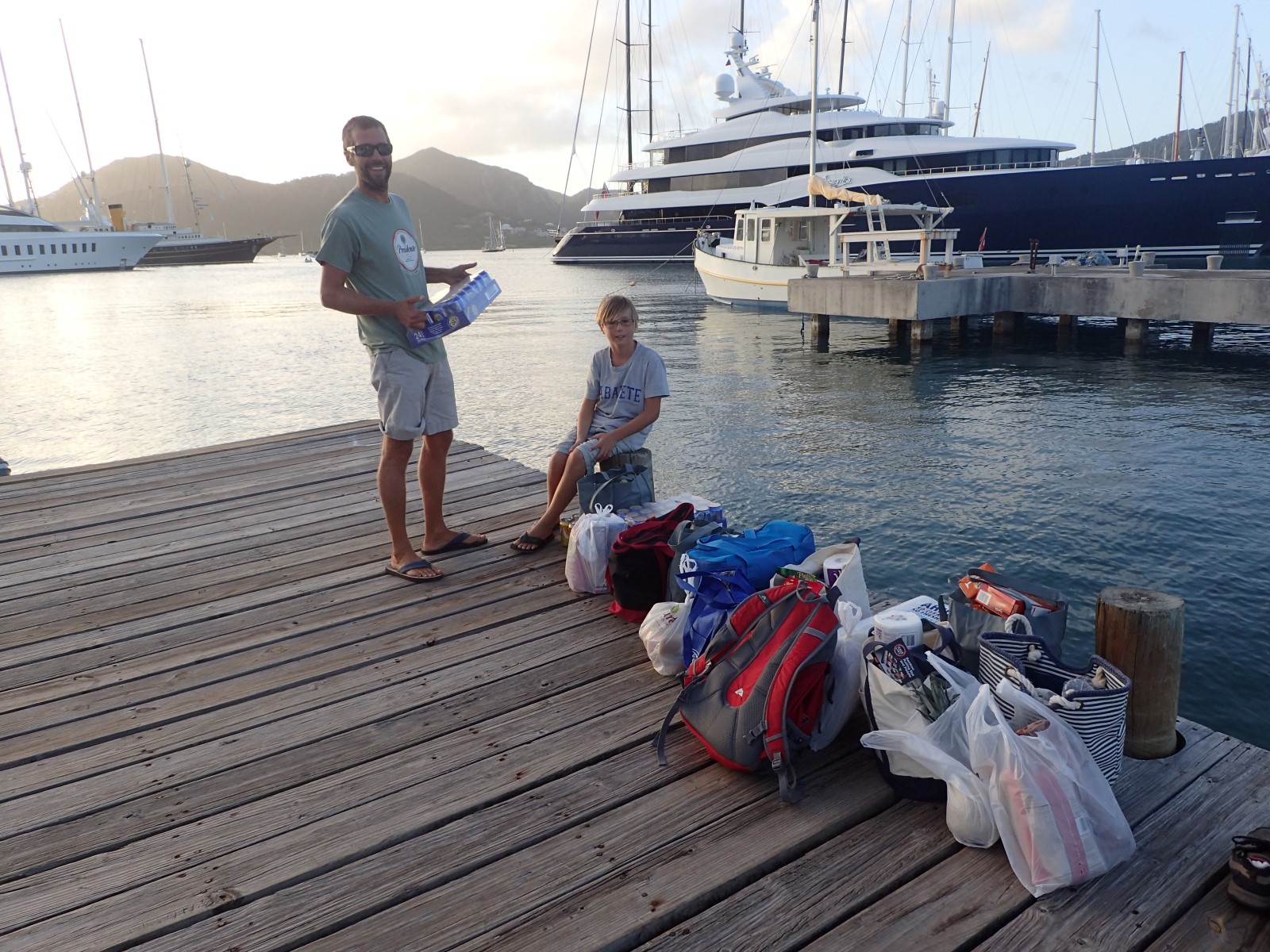 | For some reason it doesn't look like much but this was a ton of food. Maybe it just seems like a ton when you have to load and unload it by dinghy at the end of a very long day. |